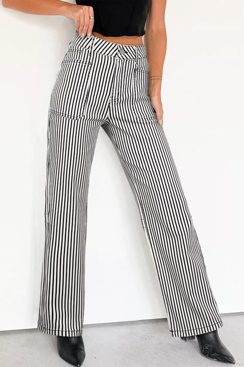 Meet your new favorite high-waist jeans: playful stripes, four handy pockets, and a comfy straight-leg fit. Ready for brunch, errands, or anytime chic.